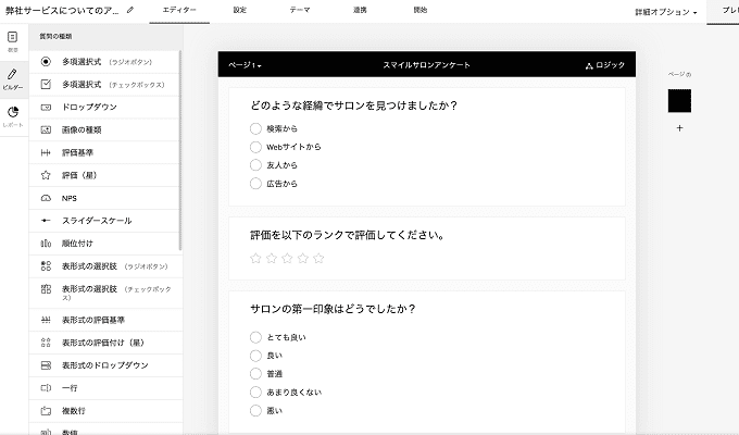 • テンプレートが多数用意されていて、スタイリッシュなデザインのアンケートが作成可能