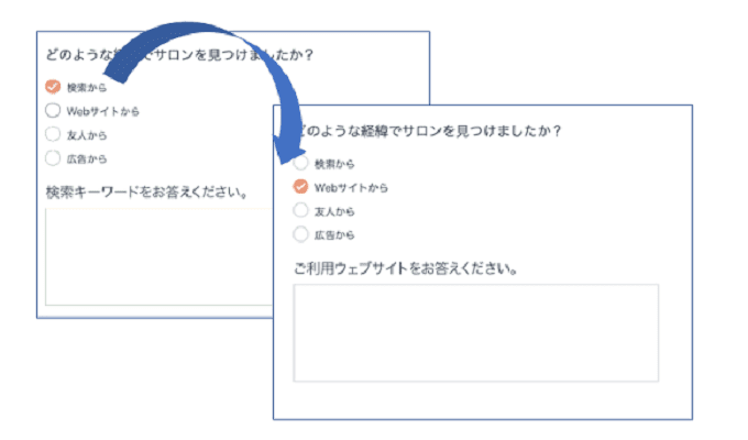 アンケートの回答次第で追加する設問などを用意することもできます。